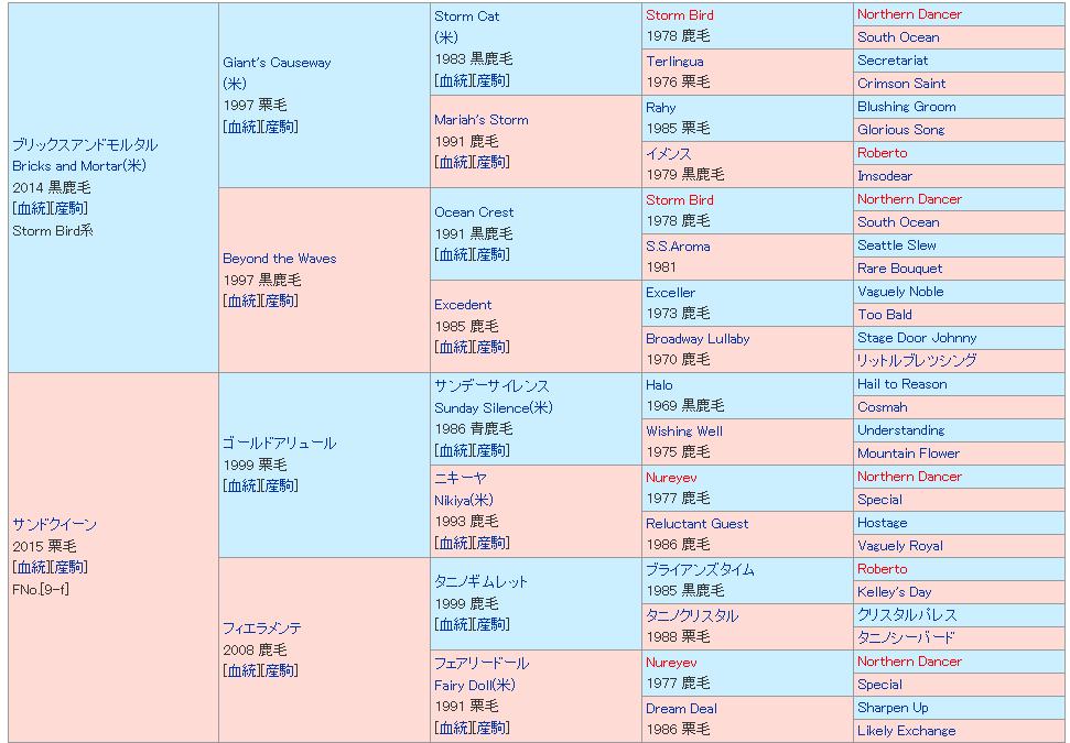 種牡馬ブリックスアンドモルタルが全面でクロスをしやすいのはStorm Cat Storm Bird Secretariat