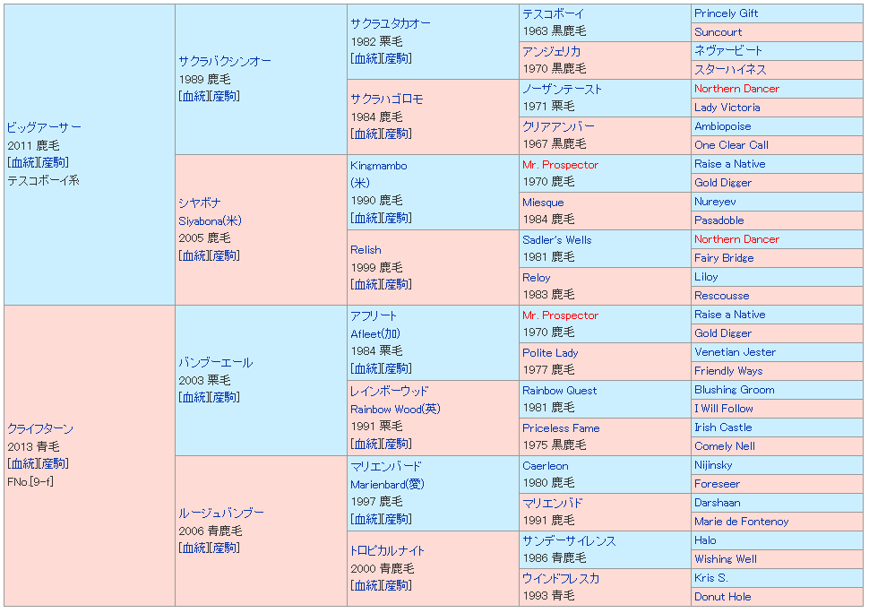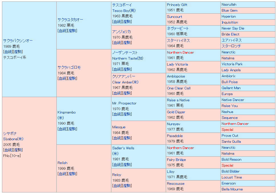 この血統はビッグアーサーの母シヤポナを強調しており、それは前述のほぼエルコンドルパサーです。